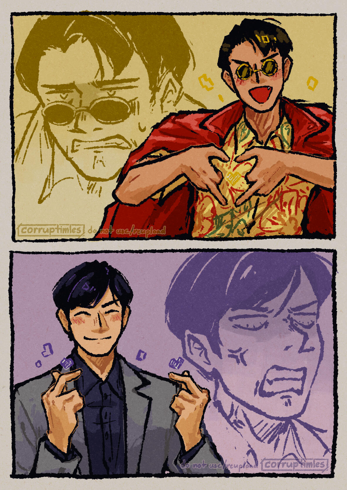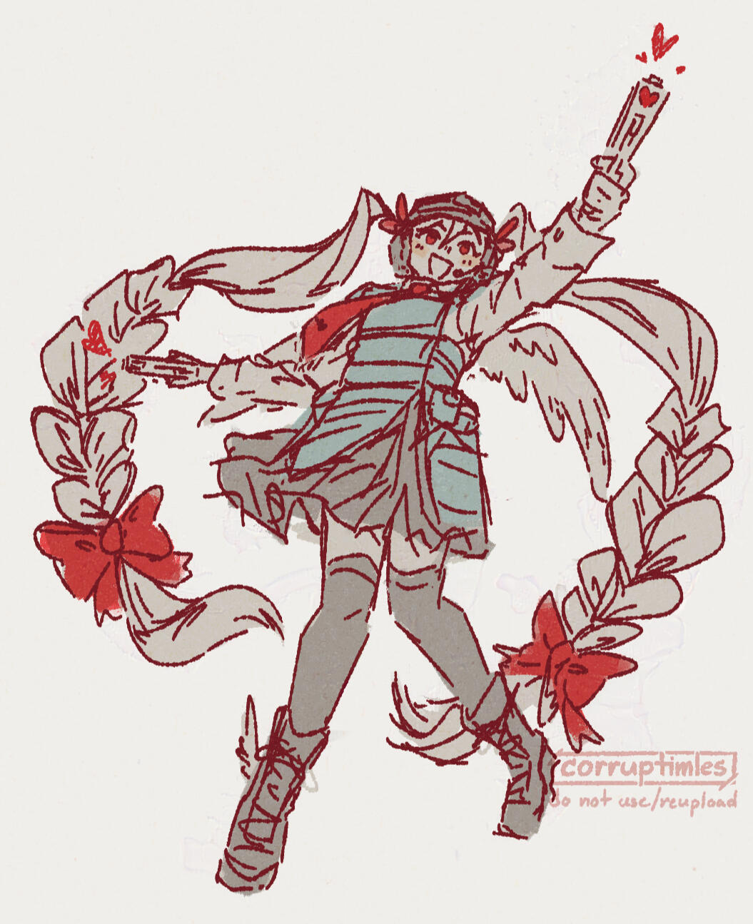 The commissioned Artwork remains the sole copyright property of Corruptimes Artworks. As such, you and all other parties are prohibited from taking any credit for the Artwork. You are, however, allowed to use the Artwork as a basis for an applicable character or design, provided that express and written permission is provided to you by Corruptimes Artworks, and that this usage is not prohibited as described in this Agreement.Re-posting the Artwork, such as by posting it on your social media page, is only allowed under the strict conditions that it is not being done for profit or any other forms gain, and that adequate attribution to Corruptimles Artworks is provided (for example, such as in the description of your social media post containing the Artwork). As